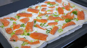 De koks hebben het volgende bedacht: Flamkuchen met lenteui en zalm, ovenschotel met brocoliroosjes en brie, gemengde salade met ei en als toetje tiramisu variant met perzik.